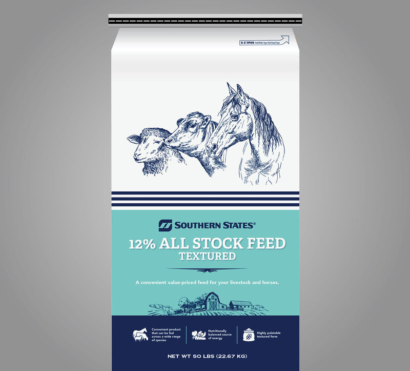 Scope: The client wanted their new line of livestock feeds to reflect a retro aesthetic that honored their 100+ year heritage. They requested vintage-style line art and historical design elements, including the iconic three lines. Since this was a budget-friendly product line, we chose a white stock bag as the base and added a bold color band around the bottom—varying by feed type—for easy identification and shelf appeal.